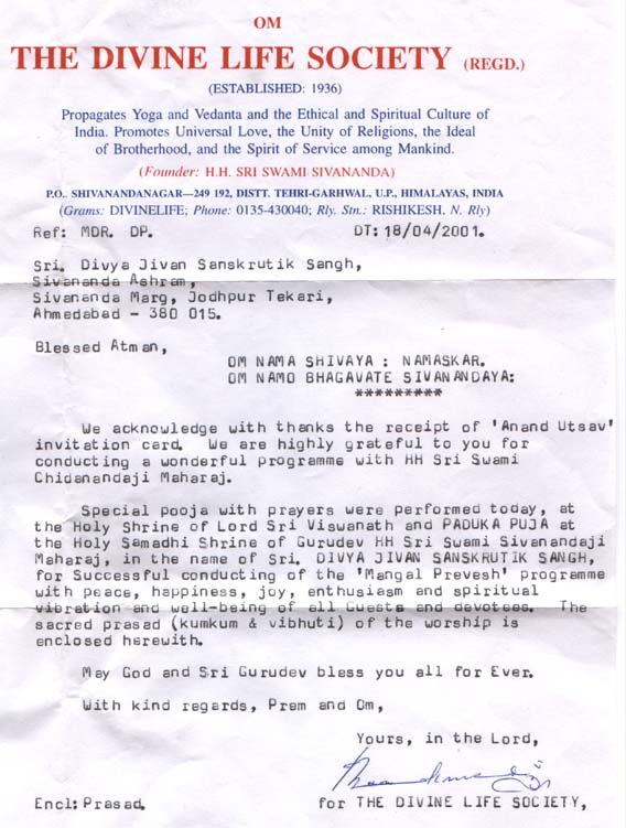 Please subscribe to Divyajivan Mailing List. We will update you with new uploads of spiritual literature on the web of Holy Master Sri Swami Sivanandaji Maharaj, saints of his lineage and other saints. We will also update you about the Sivananda Ashram, Ahmedabad website and facilitate communication with Sri Swami Adhyatmanandaji Maharaj. |