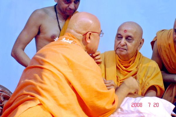Chicago:( Nov 13, 2008 - Nov 15, 2008) On Nov 13, 2008 auspicious Dev Diwali evening, Rev. Sri Swamiji Maharaj arrived here at Chicago, His last stop of His Divya Tour 2008 US, on the way to UK and finally to Sivananda Ashram, India. Pujya Swamiji Maharaj was received by Minal & Bharat Naik at the airport. As always, they are ever ready for Swamiji's Darshan, Satsang & to receive His Blessings. During, His two days stay, he was scheduled to have a thorough medical check up by Dr. Dilip Parikh, an eminent cardiologist & Swamiji's physician. Sri Swamiji Mahahraj has paid his homage to Sri H. H Sri Pramukh Swamiji Maharaj at Sri Swami Narayan Temple (BAPS' ) here in Chicago.