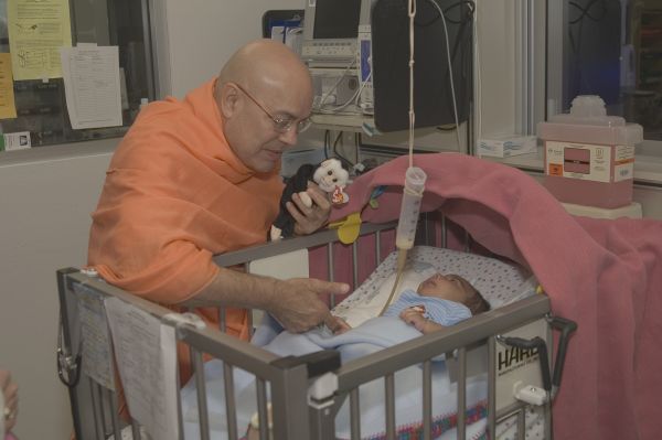 Upon request of medical authorities, Sri Swamiji Maharaj visited new born nursery; especially those who were born very critically ill and prayed for them in the department as well in public meeting also.