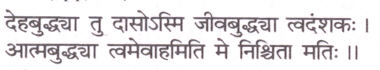 “Oh Lord, while I identify myself with my body, I am Thy servant. When I consider myself an individual soul, I am Thy part. But when I look upon myself as the spirit, I am one with Thee. This is my firm conviction.”