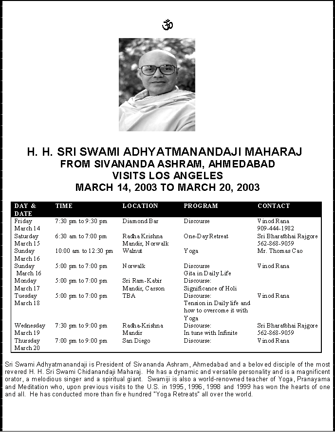 Please subscribe to Divyajivan Mailing List. We will update you with new uploads of spiritual literature on the web of Holy Master Sri Swami Sivanandaji Maharaj, saints of his lineage and other saints. We will also update you about the Sivananda Ashram, Ahmedabad website and facilitate communication with Sri Swami Adhyatmanandaji Maharaj. |