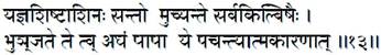 The righteous who eat the remnants of selfless service (Seva, Yajna) are freed from all sins, but the impious who cook food only for themselves (without first offering to Me or sharing with others), in truth, eat sin. (3:13)