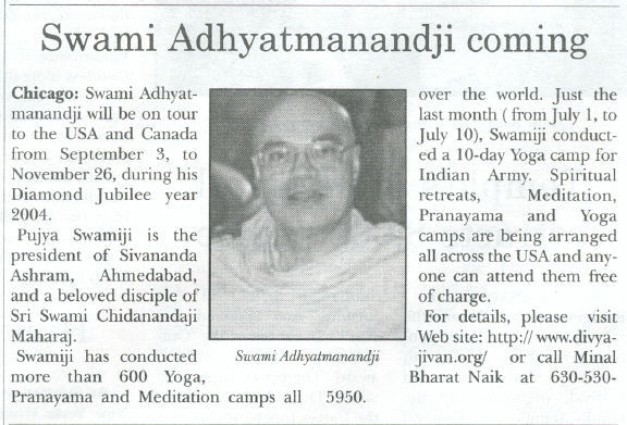 Swami Adhyatmanandaji's Tour to USA & Canada