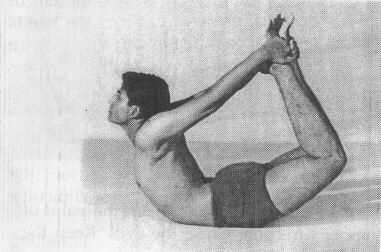 One point to be careful about is that majority of persons lift the head and chest too much whereas knees remain touching the ground. This is not proper Dhanurasana. Hence lift the head and the chest only after legs and knees are raised up.