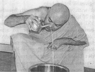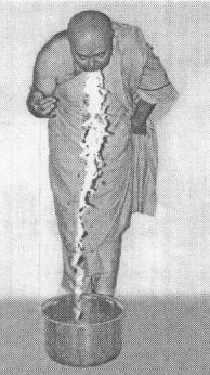 Kunjal process is also called Gajakarni. In the early morning, clean your teeth, finish your natural call and on empty stomach drink 7, 8 or 9 glasses full of tepid water in which a little salt has been added. When you take in 7 or 8 glasses of water, the same will come out of belly by itself, in the manner in which a Vasudeva (syphon) cup gets automatically empty. In case this does not occur, take four fingers of your right hand right up to the inside of the throat and all water will be belched out. This will clean inside of neck, food pipe and stomach. This cleaning is very essential for asthmatic patients.