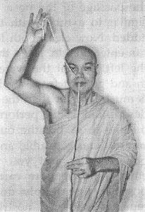 Thereafter one, by one go on tightening fingers of ‘the hands, thumbs, fists, wrists, elbows, biceps, shoulders, and relax. Similarly pull the belly lying under the navel inside and relax. Broaden the chest by breathing in and relax.. Similarly waist, back, and shoulders as well as muscles of the face must be stiffened. Eyes must be closed. Mouth should remain a little open and relaxed. Breathe only’ through the nostrils. Thereafter feel that the thumbs of the legs, fingers, soles, heels, ankles, legs, muscles, knees, thighs, buttocks and the whole body lying beyond the navel is now completely quiet as if there is nothing, as if it is a corpse, it is light as a blade of straw, lifeless; all around is quiet, soundless, as if it is a crematery. In a similar manner, fingers and thumbs of both the hands, arm-pits and shoulders are completely quiet, they are relaxed.