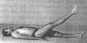 One should lie supine on the ground. Raise only one leg in the first