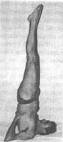 For this Asana one has to lie down on the ground with face upward and start lifting both the legs slowly Do not bend the knees. Do not make any hurry nor give any jerk or use any force. In the beginning while you raise the legs take in a deep breath, as the belly gets pressed go on releasing the breath. When the chin touches the chest balance the body by use of both hands.