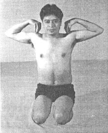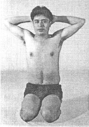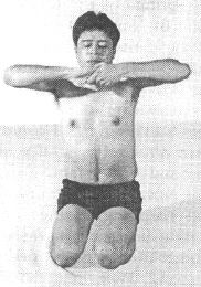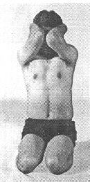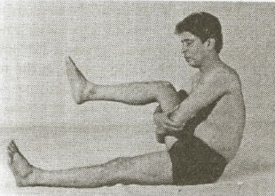 (2) Now release the hands from the paws of the legs as in earlier exercise. Hold both the knees by the hands above. Now move the knees up and down 16 to 32 times.