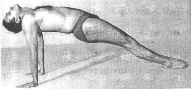 23. Sit with both legs straight forward. The two hands, must be kept on ground a little apart with fingers pointing towards the direction on back of head. Now raise the back as much as possible by balancing the body weight on both the hands, paws of both the feet and heels. The stiffness in the back will be reduced. This flexibility exercise will give you liveliness, sprightliness and will add to the vital air.