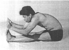 8. For this exercise also one has to sit with stretched legs. Close the two fists of the hands. Now imitate rowing a boat like a boatman rowing a boat by bending forward right upto the legs. Repeat this exercise 8 to 10 times.