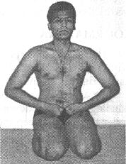 the navel. Keep the spinal column vertically straight and keep head, neck and