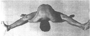 Sit with legs apart. Now lean forward while you go on exhaling and bend down as much as possible. Put the arm under the thighs. Keep the hands firmly on the floor. Stretch the legs. Remain leaning and bending down for the. Maximum time that you can do so. For variation one can bring legs together in front and clutches of hands of the back. Yogis call this posture Sputa Koormasana.