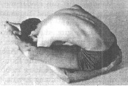 forehead on the knee. If in the beginning you cannot catch hold of the thumb,